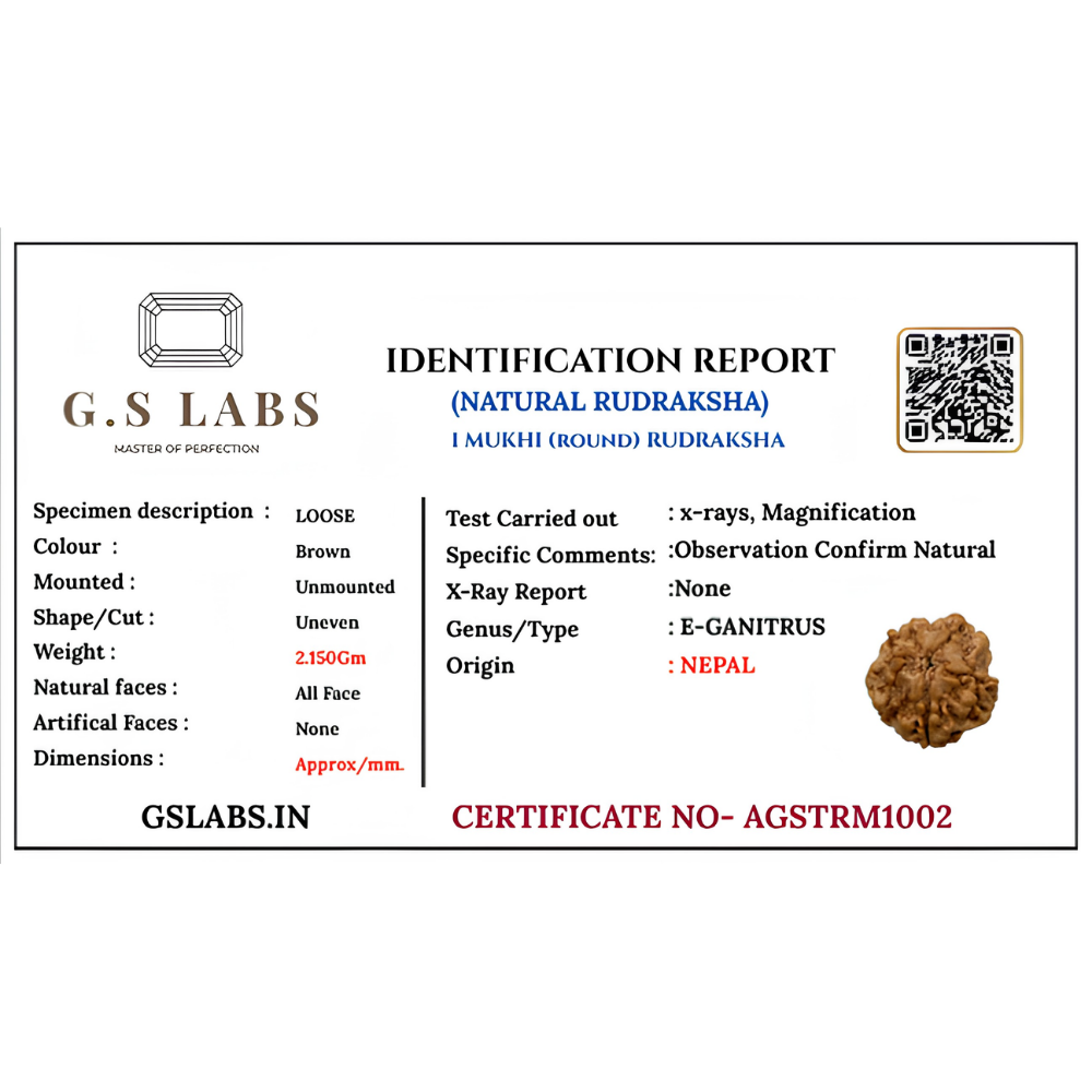 The sacred bead is appropriate for personal use or giving as a gift if you wish to purchase a genuine 1 Mukhi Rudraksha online․