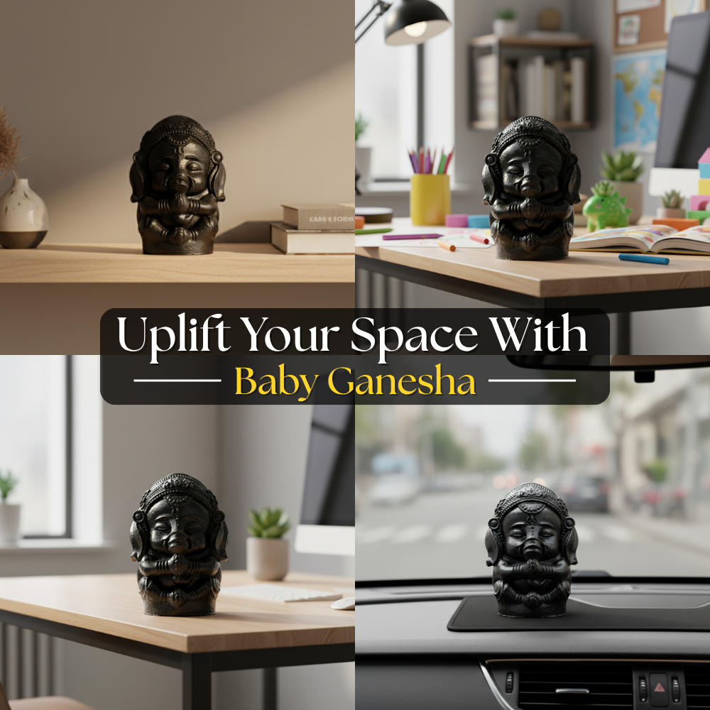 Baby Ganesha Murti Perfect for Home, Office & Car Dashboard.