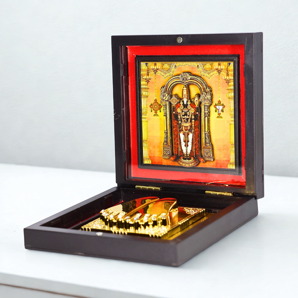 For best results, the Tirupati Balaji Prayer Box is to be placed in the northeast or east direction of the home or office. Keenly, let the Charan Paduka face west while you sit facing east during prayer in order to align with the divine energy flow.