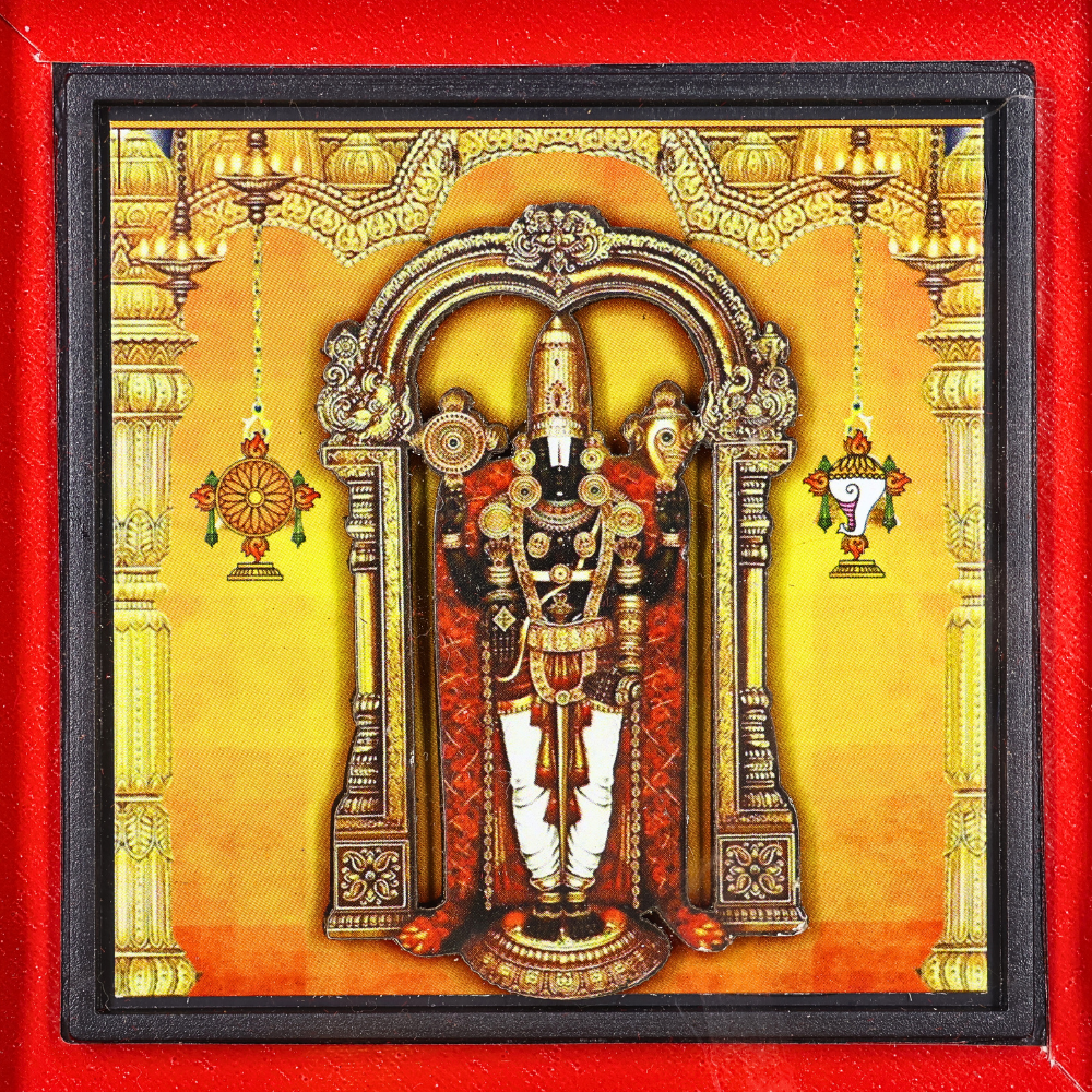 The Tirupati Balaji 3D Prayer Box symbolizes an embodiment of devotion, prosperity, and divine blessings. Venkateswara Swami of Tirumala is revered as the ultimate source of wealth, happiness, and satisfaction. With this elegantly crafted Balaji Prayer Box, you can bring the mighty blessings of Tirupati Balaji into your home in an elegant 3D temple setting. This 3D prayer box is used for daily puja, vastu shastra corrections, home decor, and gifting purposes.