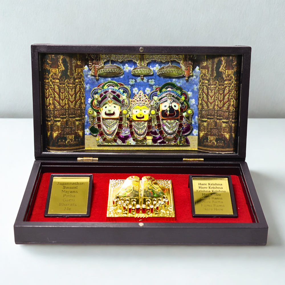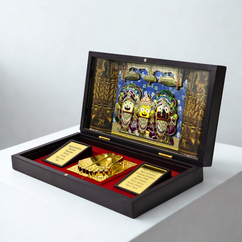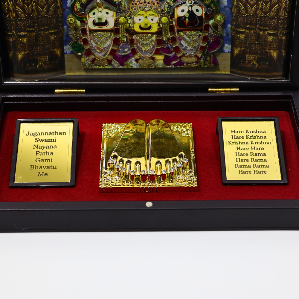Lord Jagannath 3D Prayer Box | With Golden Plated Charan Paduka | Ideal for Gifting & Daily Puja