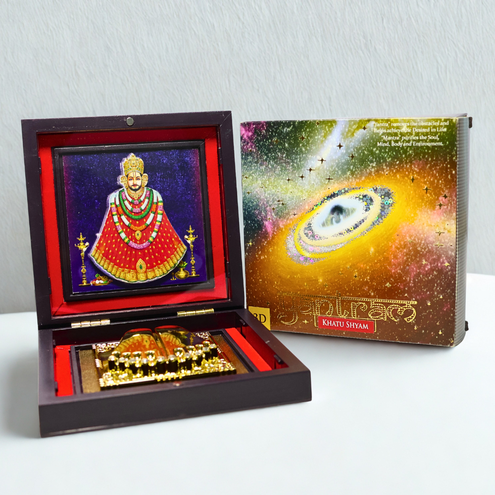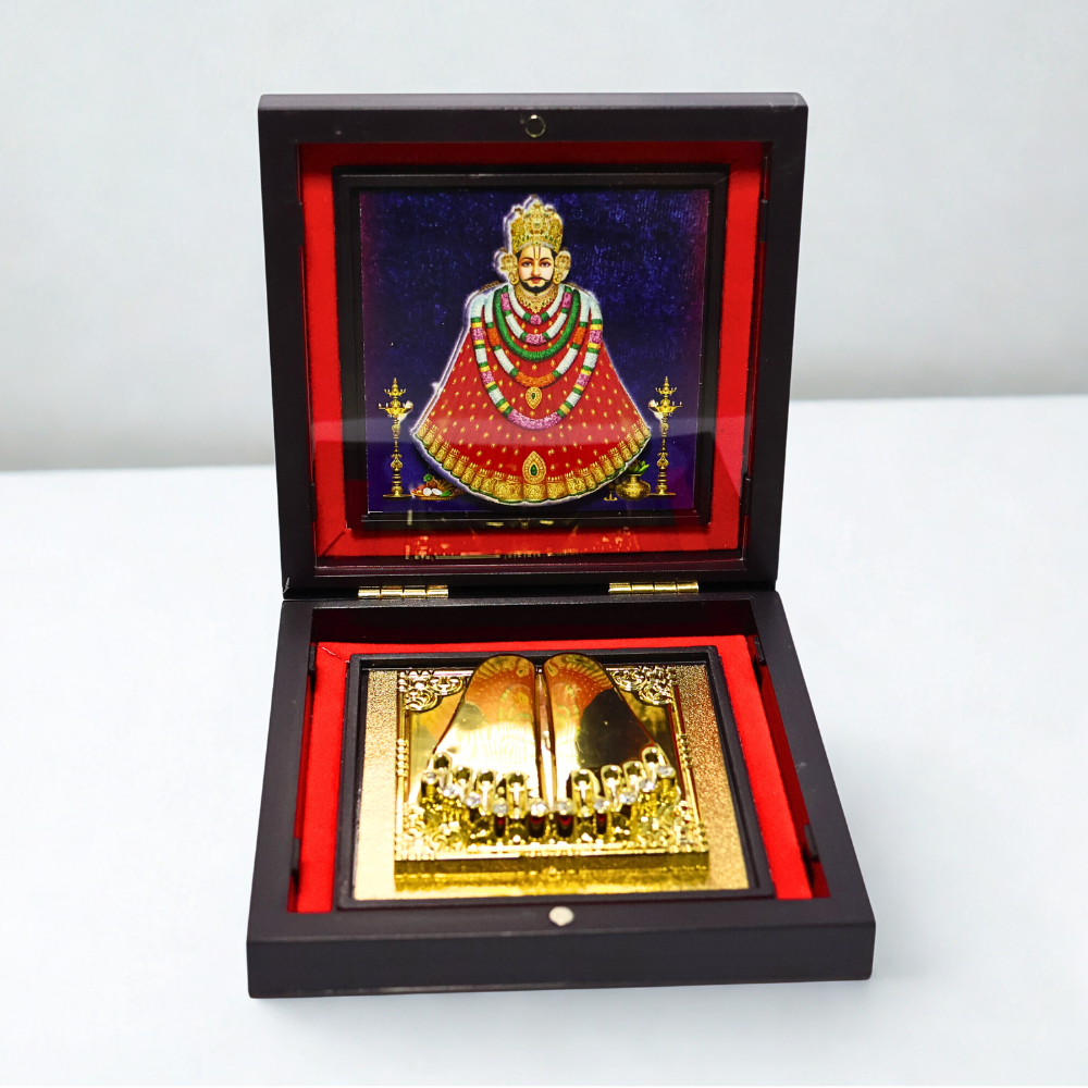 Khatu Shyam 3D Prayer Box | Golden Plated Charan Paduka | Ideal for Gifting & Daily Puja