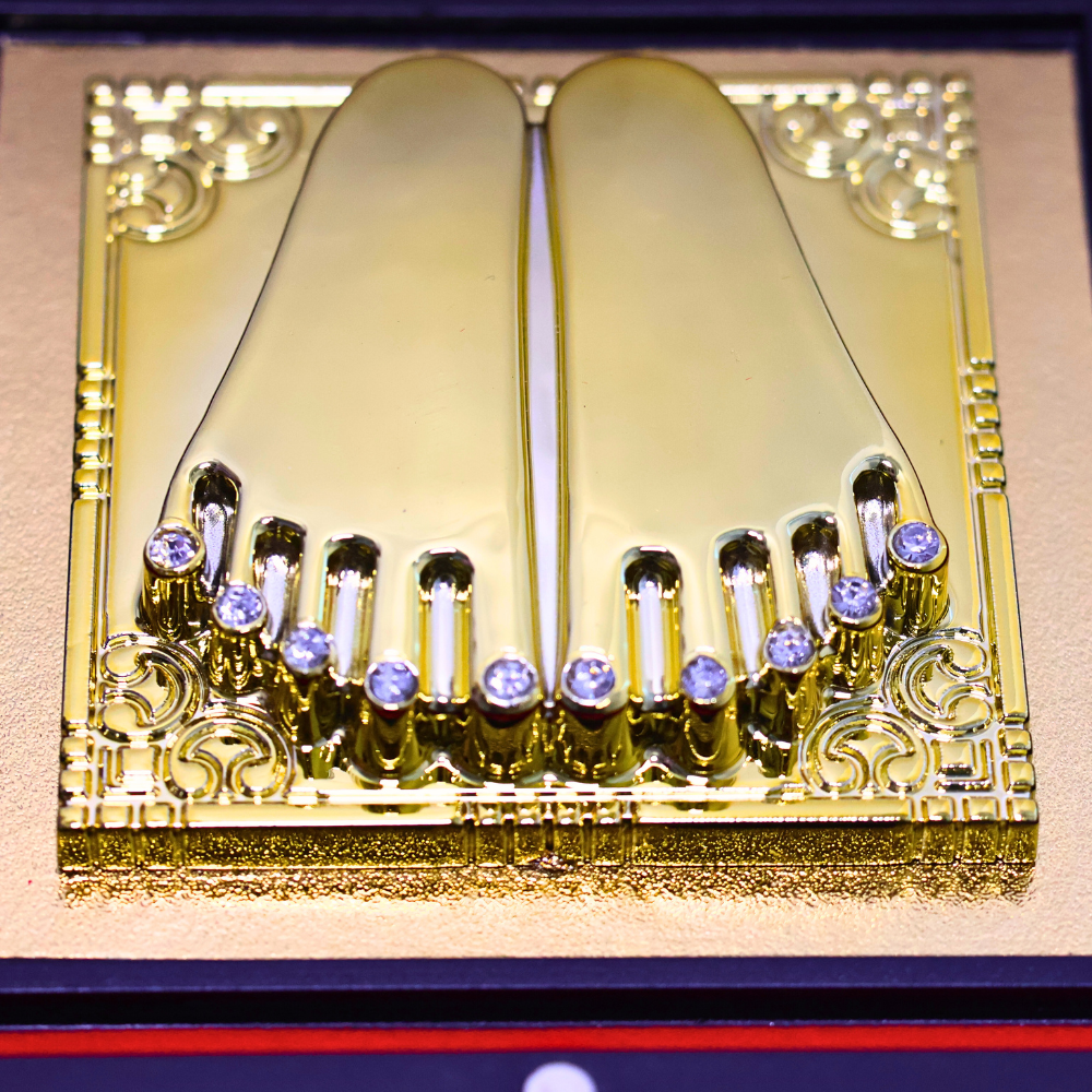 Khatu Shyam 3D Prayer Box | Golden Plated Charan Paduka | Ideal for Gifting & Daily Puja Khatu Shyam 3D Prayer Box | Golden Plated Charan Paduka | Ideal for Gifting & Daily Puja