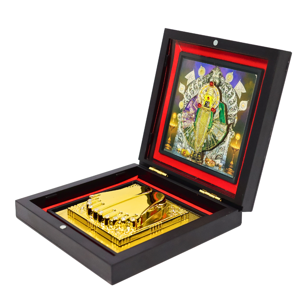 Kolhapur Mahalaxmi 3D Prayer Box | Golden Plated Charan Paduka | Ideal for Gifting & Daily Puja