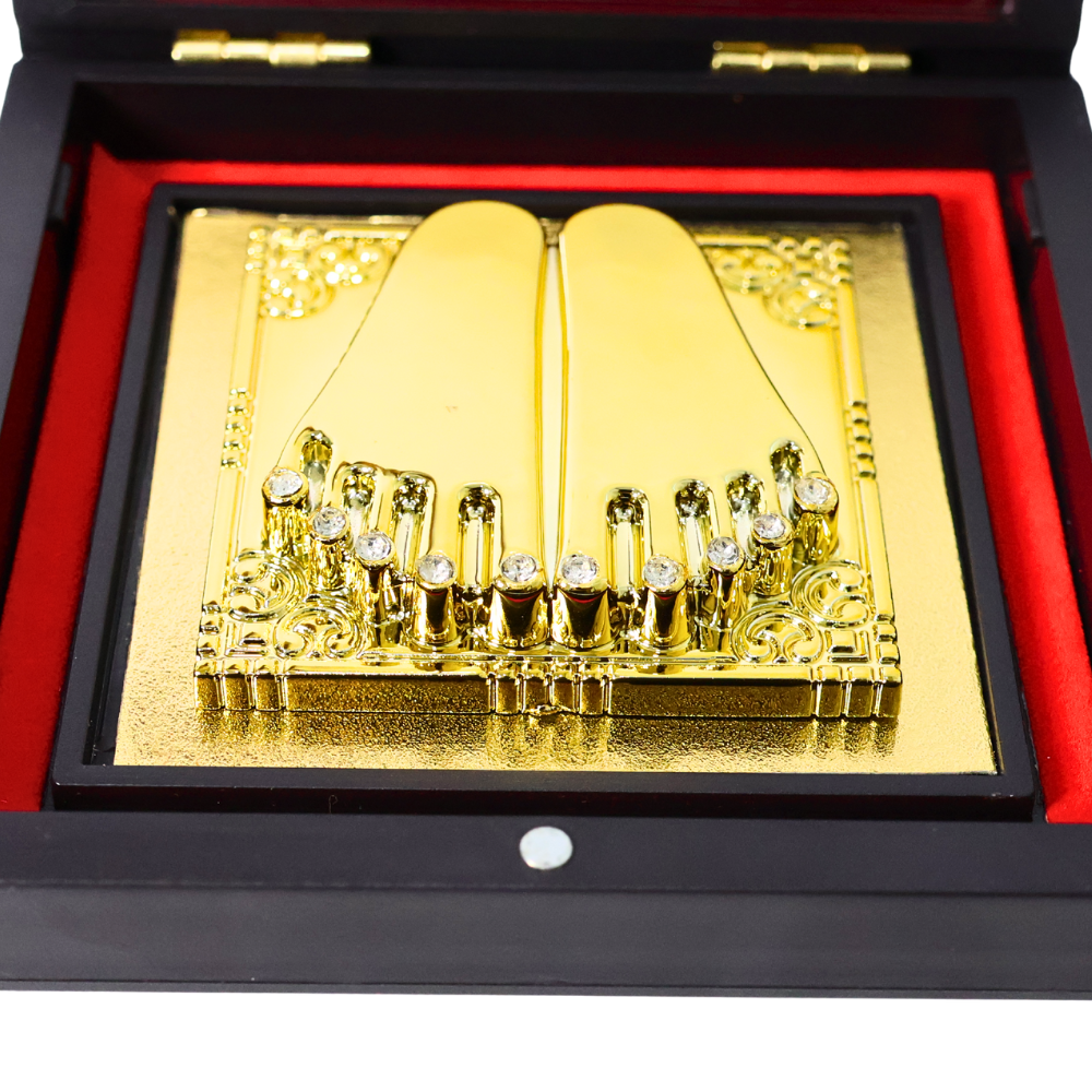 Kolhapur Mahalaxmi 3D Prayer Box | Golden Plated Charan Paduka | Ideal for Gifting & Daily Puja Kolhapur Mahalaxmi 3D Prayer Box | Golden Plated Charan Paduka | Ideal for Gifting & Daily Puja