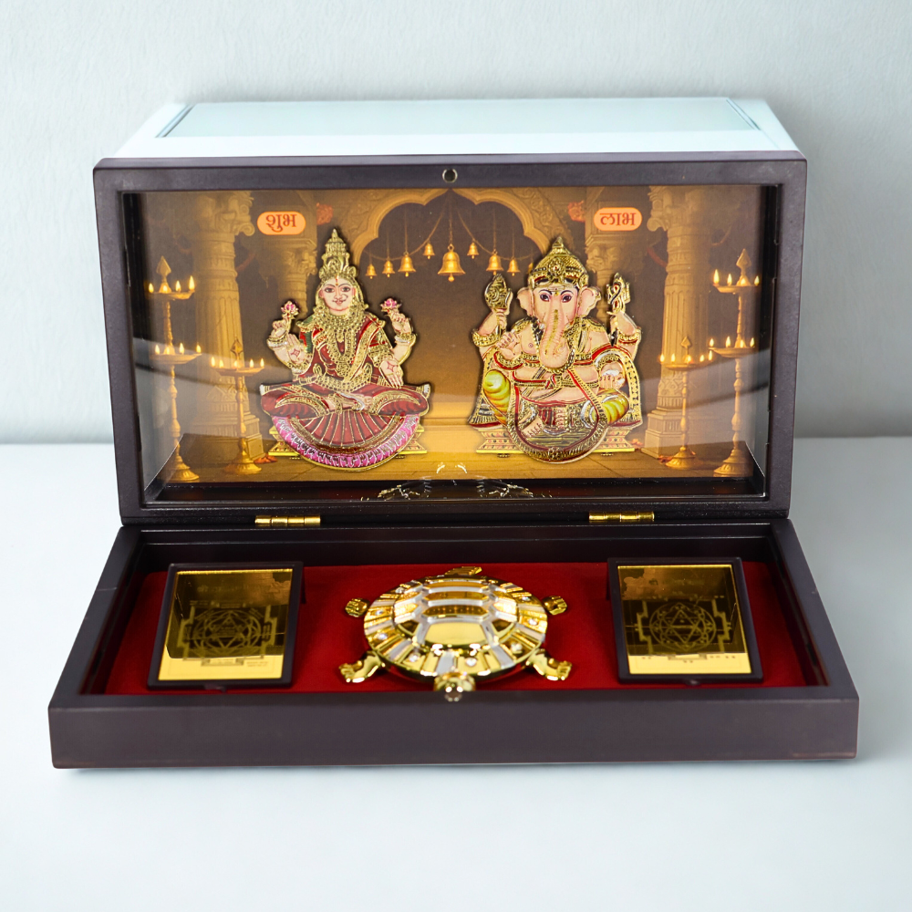 Lakshmi Ganesh Prayer Box 3D Golden Plated