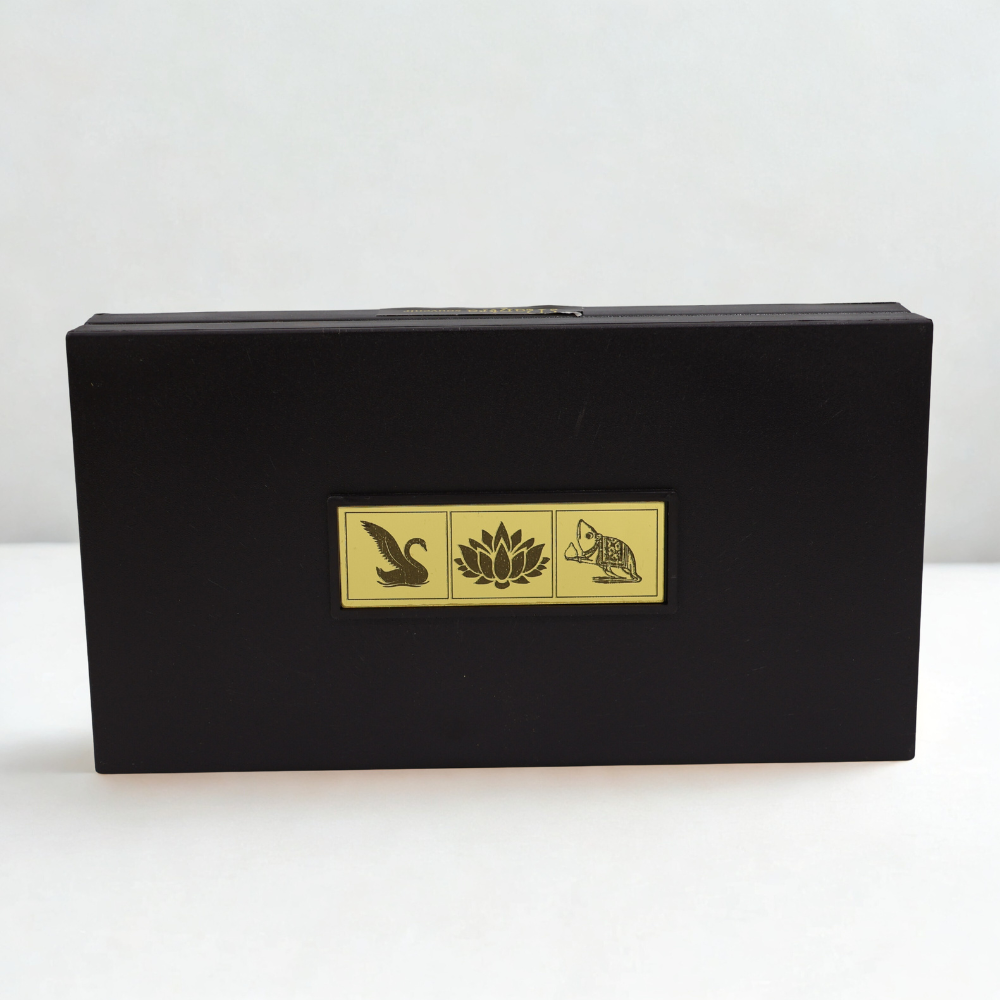 This Lakshmi Ganesh Saraswati Golden Prayer Box is more than a religious product; in fact, it is an “agent of Abundance, Wisdom, and Success.” With the presence of the energies of all three gods, the mandir art of gold, Charan Paduka, and inspirational words from the scriptures, there is no denying the fact that the product is a must-have.