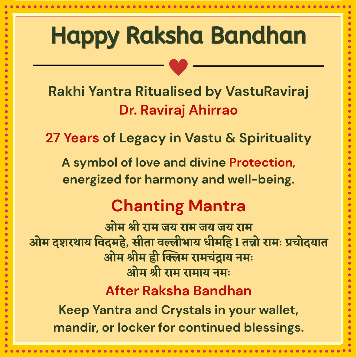 Note: After Rakshabandhan, keep Yantra and Crystals in your wallet, bag, locker or pujaghar for continued blessings of this divine rakhi.