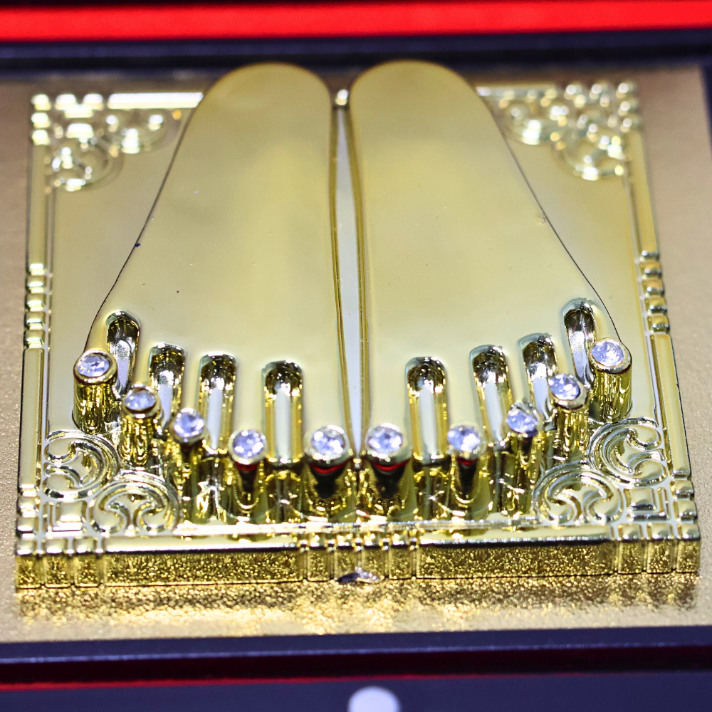 Material: Crafted with high-grade fiber plastic, it has a divine radiance and strength thanks to its exquisite golden plating.
